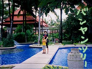 軽く昼食を済ませた後、父&ほだかは散歩へ。母は部屋で昼寝。無料送迎バスの「トムヤム君」(すごい命名だ!)が出発する時間にロビーで待ち合わせするも、母はみごとに寝過ごしたとさ。 |